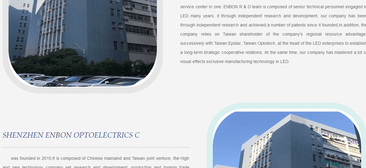 ENBON Co.,Ltd was founded in 2010.It is composed of Chinese mainland and Taiwan joint venture, the High and new technology company set research and development, production and foreign trade service center in one. ENBON R & D team is composed of senior technical personnel engaged in LED many years, it through independent research and development, our company has been through independent research and achieved a number of patents since ...